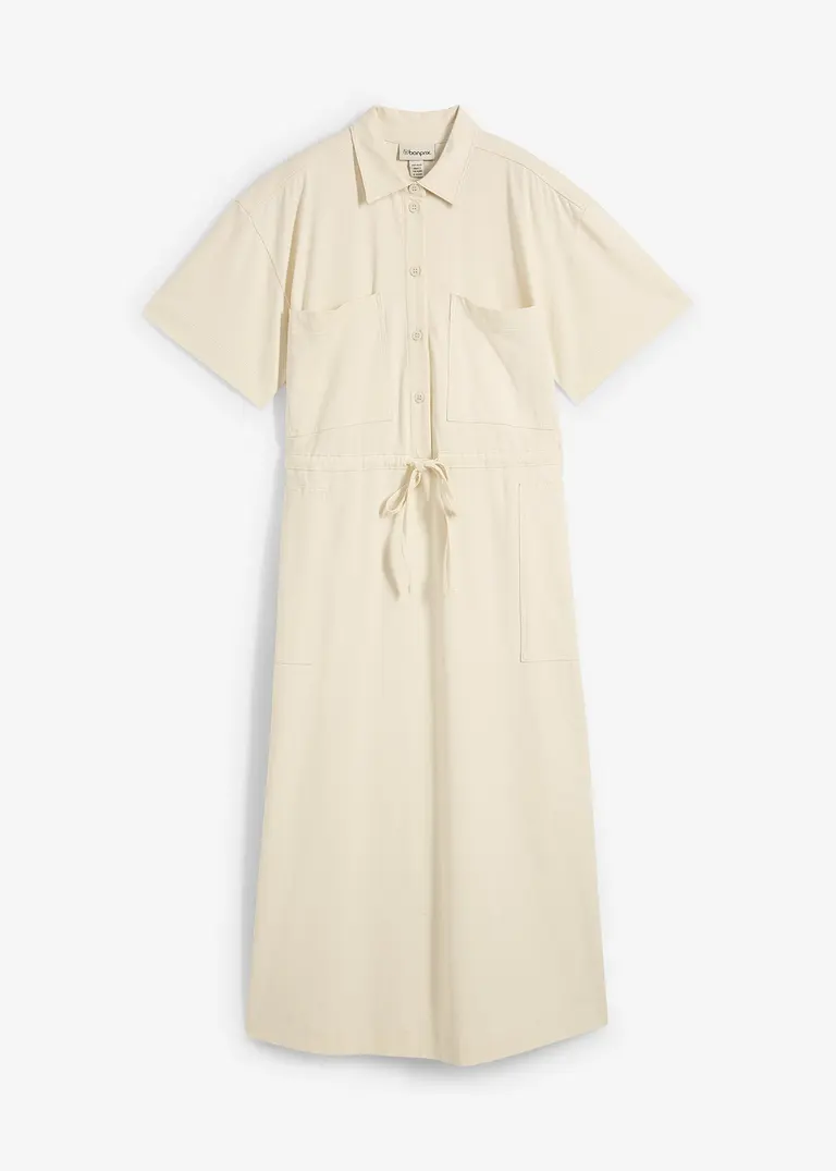 Jerseykleid aus Baumwoll-Stretch in beige von vorne - bonprix
