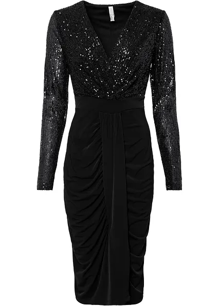 Feminin und festlich: Pailletten-Kleid mit Raffung und Schürzen-Drapierung am Rock