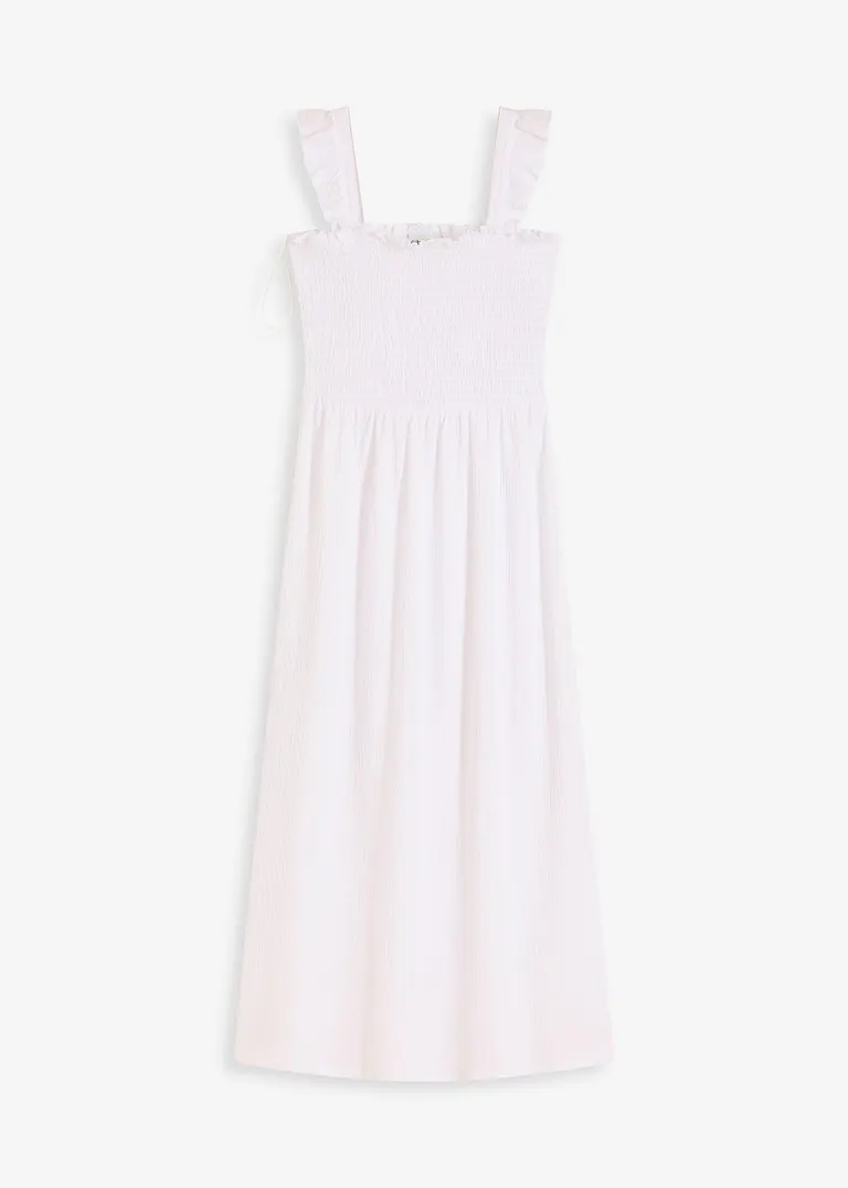 Jerseykleid mit Smok-Detail in weiß von vorne - bonprix