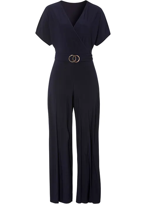 Jersey-Jumpsuit in blau von vorne - bonprix