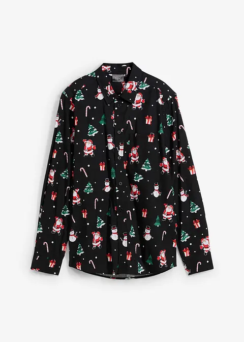 Cooles bedrucktes Langarmhemd mit Weihnachtsmotiv und Kent-Kragen