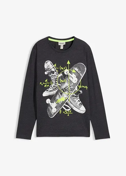 Bequem reinschlüpfen und lässig unterwegs sein – dieses Shirt punktet bei Jungen mit einer erstklassigen Mischung aus Design und Komfort. Dank seiner lockeren Schnittform trägt sich das Langarmshirt mit coolem Druck und Rundhals-Ausschnitt angenehm. Die weiche Ware und die Bündchen unterstreichen den Tragekomfort.Auf der Vorderseite präsentiert sich das Modell von bpc mit einem großen Aufdruck und farblich abgesetzten Details.