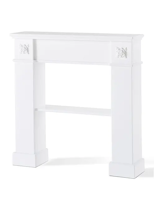 Die Kaminkonsole sorgt im Nu für eine besonders gemütliche Atmosphäre in jedem Wohnraum. Sie verfügt über einen Einlegeboden, auf dem Vasen oder Bilderrahmen dekorativ platziert werden können. Stellen Sie eine echte Kerze vor den Kamin, um die Besonderheit dieser Konsole zu unterstreichen. Die Kaminkonsole ist ein schöner Hingucker, der für eine Extraportion Gemütlichkeit sorgt.
