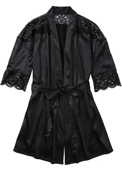 Satin Kimono mit Glanzeffekt und Spitzeneinsätzen