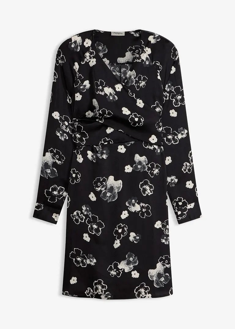 modisch bedrucktes Satinkleid mit Wickel-Detail zum Binden hinten im Rücken
