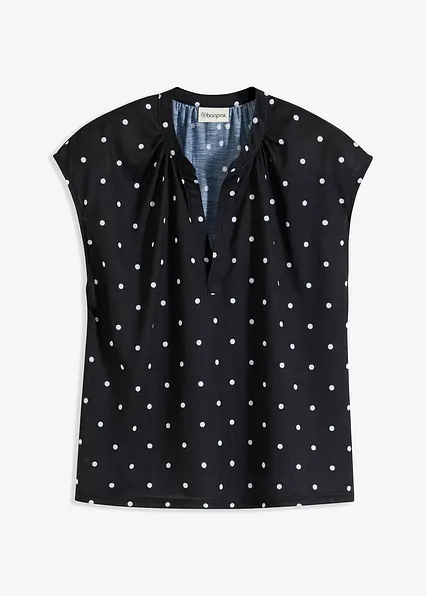 Kurzarmshirt mit Henley-Ausschnitt aus Viskosemix in schwarz von vorne - bonprix