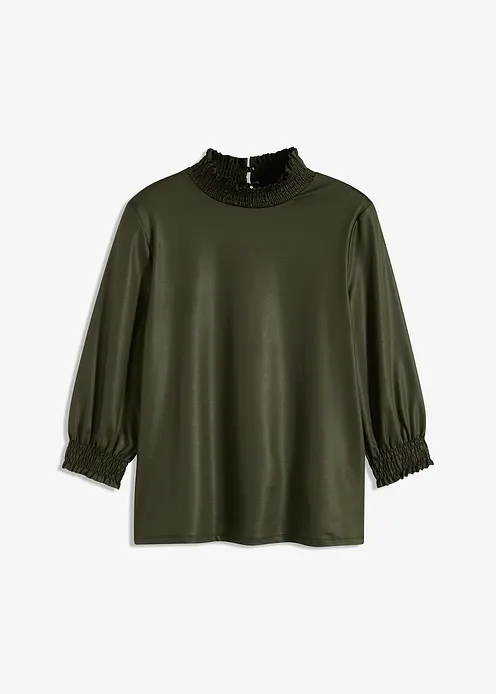 Hochgeschlossenes Langarmshirt aus Lederimitat-Optik