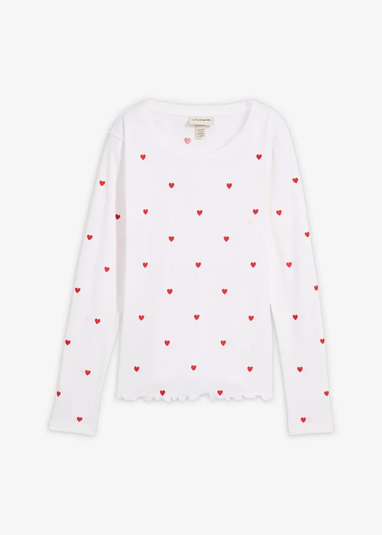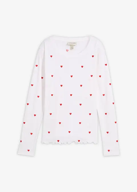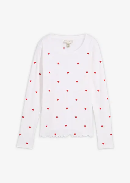 Weiches Langarmshirt aus reiner Baumwolle mit gestickten Herz-Details