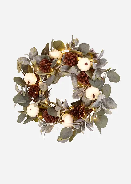 LED-Wanddeko Kranz mit Blättern und Tannenzapfen