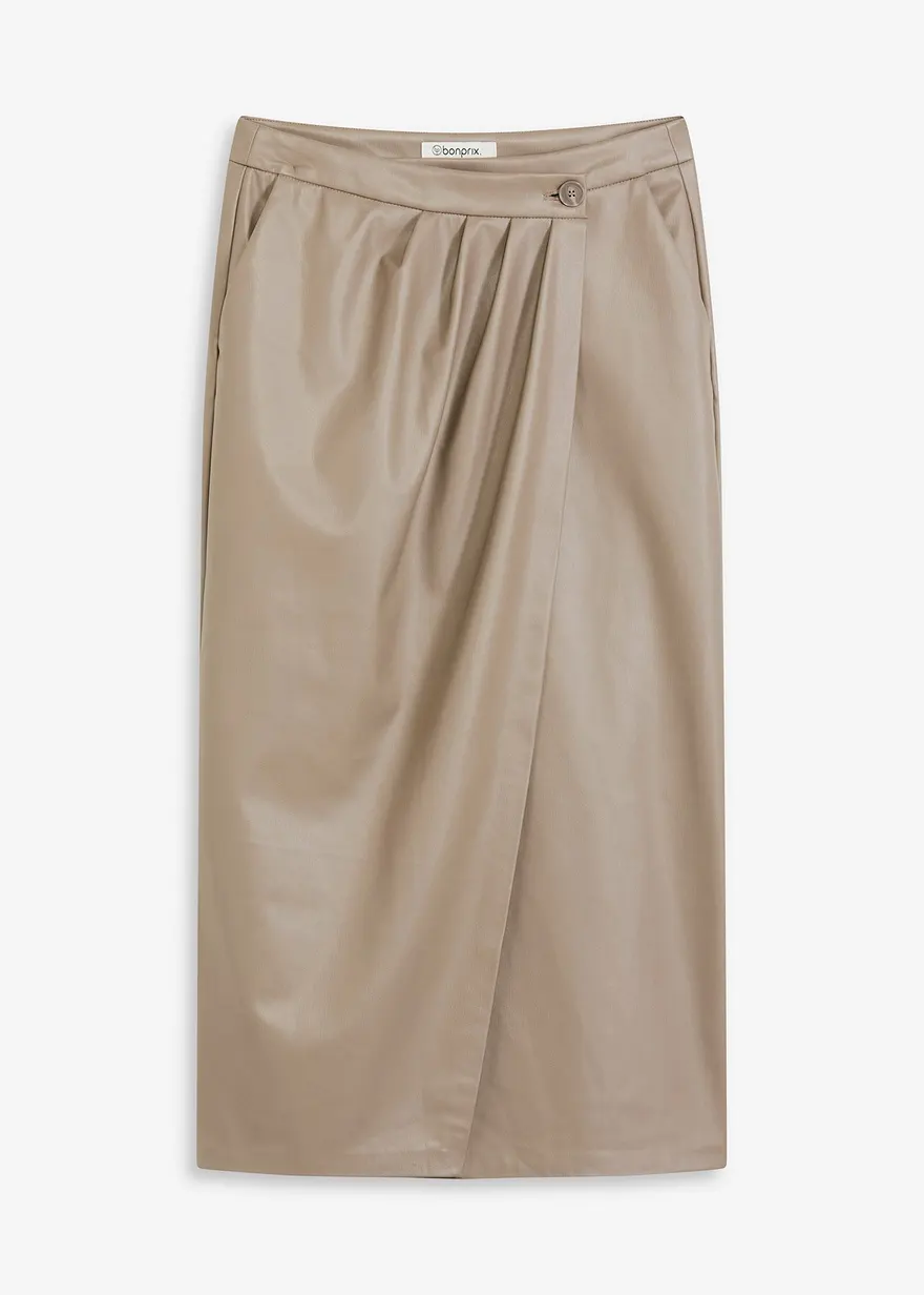 eleganter Lederimitat Midi-Wickelrock