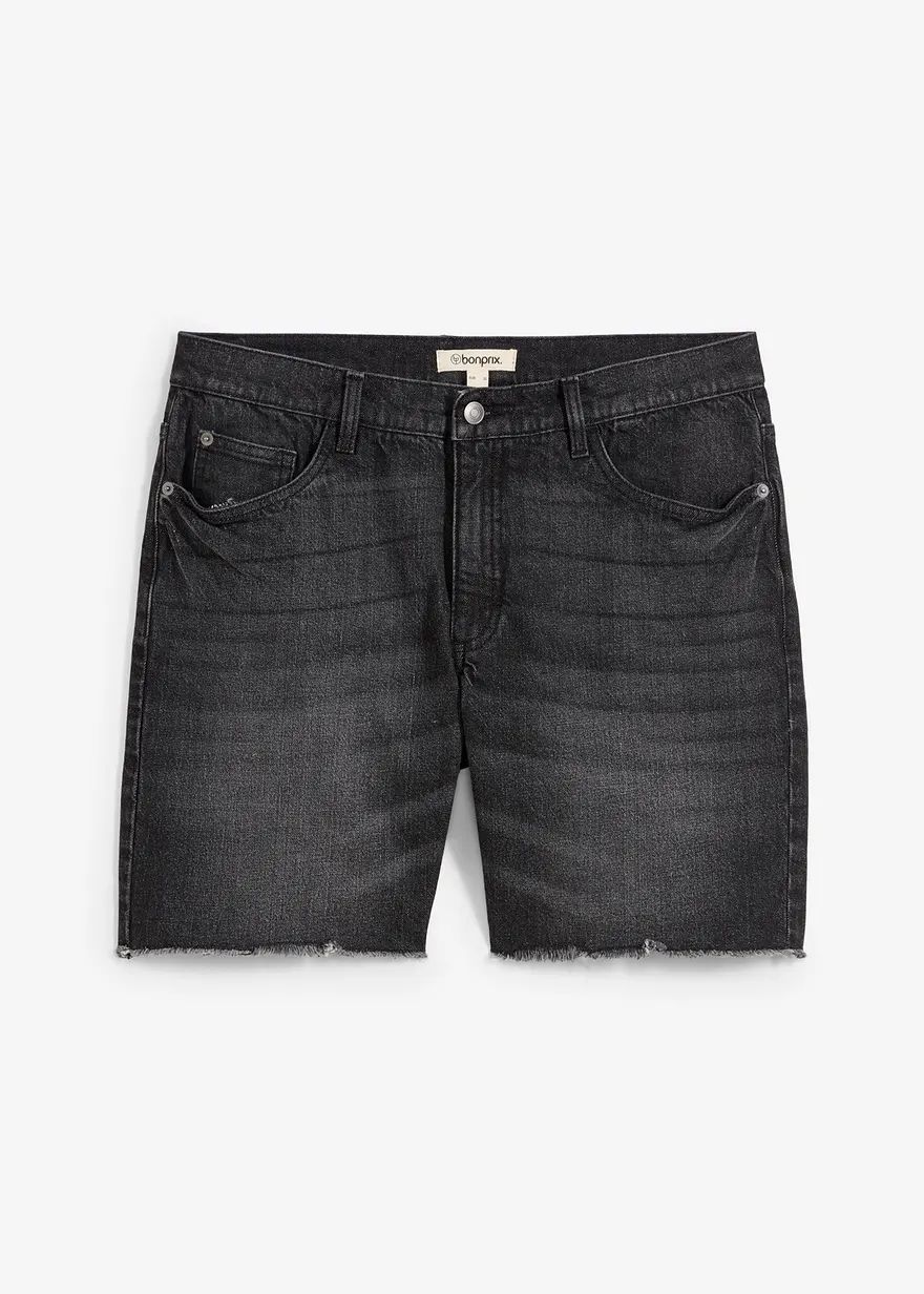 Stretch-Jeans-Shorts mit offenen Saumkanten, Relaxed Fit