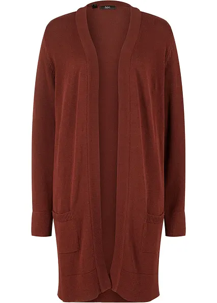 Dieses schöne Modell begleitet in vielfältigen Kombinationen durch die kühleren Tage des Jahres. Kuschelig weicher Strick sorgt für Wärme und ein Gefühl von Gemütlichkeit. Zwei aufgesetzte Taschen vorne unterstreichen dezent die legere Erscheinung der langärmligen Jacke.Die Long-Strickjacke von bpc ist offen zu tragen und schmeichelt mit ihrer komfortablen Passform der weiblichen Silhouette.