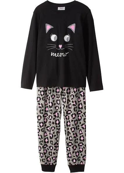 Dieser stylishe Pyjama begeistert Katzen-Fans. Der Zweiteiler punktet mit einem großen Katzenmotiv auf der Vorderseite des Oberteils und einer allover bedruckten Hose in stylischer Leo-Optik.