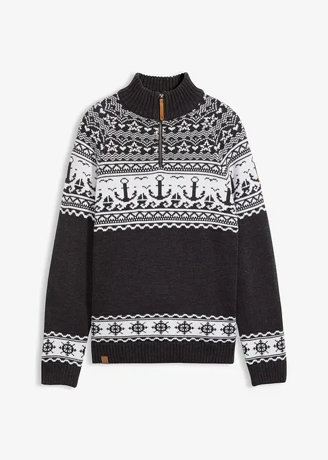 moderner Pullover mit Troyerkragen und Reißschlussöffnung