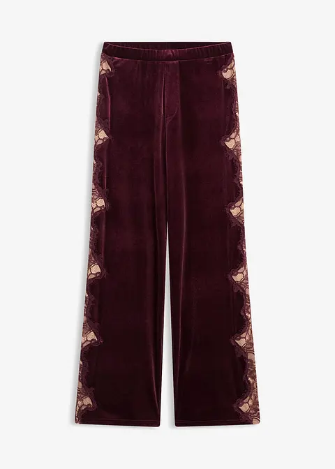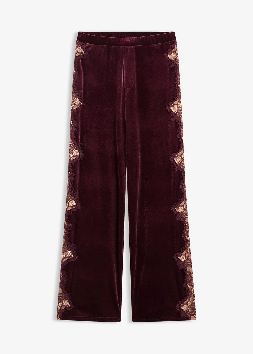 Marlenehose aus softem Samt mit Spitzeneinsatz