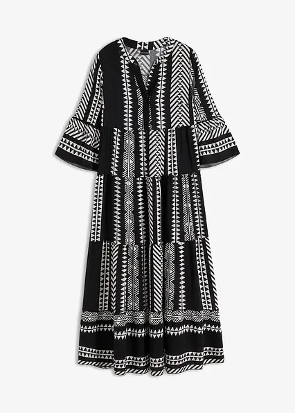 Bedrucktes Maxikleid mit Stufenrock. Länge in Größe 38 ca. 140cm.