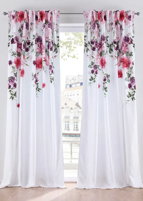 2er Pack aus Vorhängen: romantisches Blumen-Design bedruckt auf blickdichter Microfaser-Qualität.