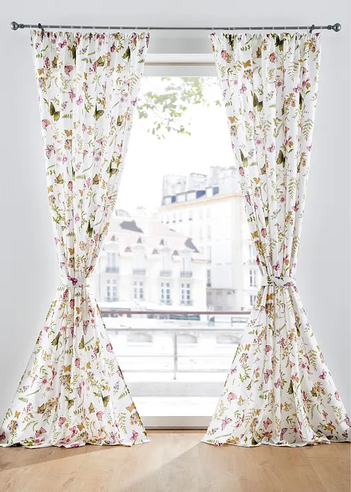 Der Vorhang zaubert den Frühling an Dein Fenster. Er besticht nicht nur durch die brillianten Farben sondern auch durch das moderne, frische Design mit Schmetterlings- und Blumen-Motiven. Der blickdichte Vorhang ist aus hochwertigem Microfaser-Gewebe gefertigt, wodurch er besonders schön fällt und ein leichter Lichteinfall möglich ist. Der Vorhangschal wird mit einem passenden Raffhalter geliefert.