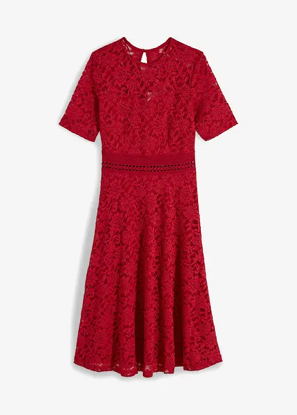 Romantisch und feminin: Midikleid aus Spitze mit Häkeleinsatz in der Taille