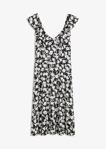 Weit schwingendes Kleid mit Rüschenausschnitt