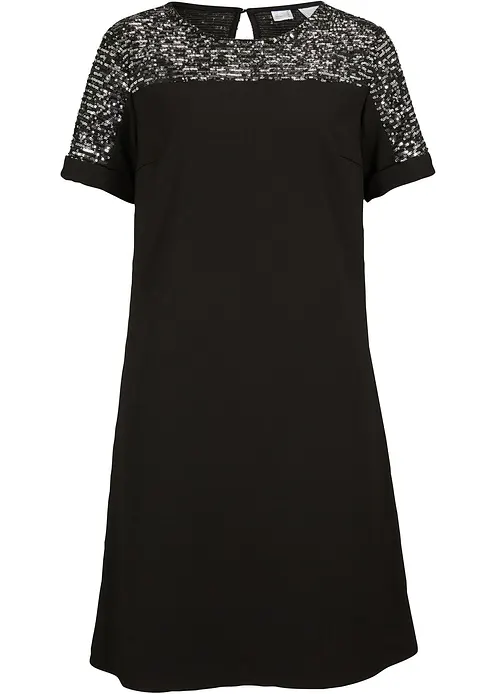 Kleid mit Pailetten-Einsatz in schwarz von vorne - bonprix