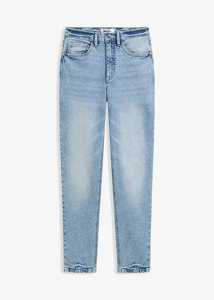 Mom Jeans High Waist, Stretch in blau von vorne - bonprix