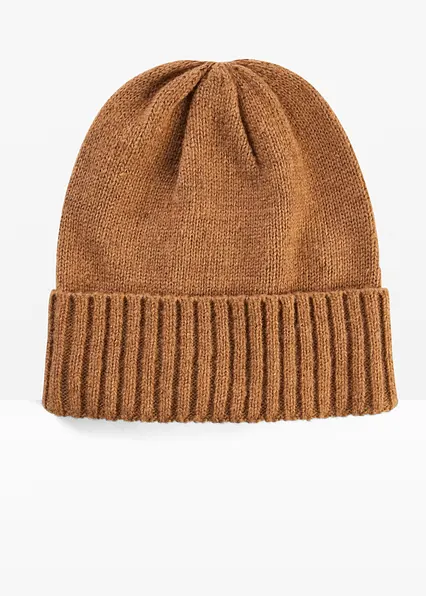 Schlichte Mütze mit Umschlag in Rippstrickoptik