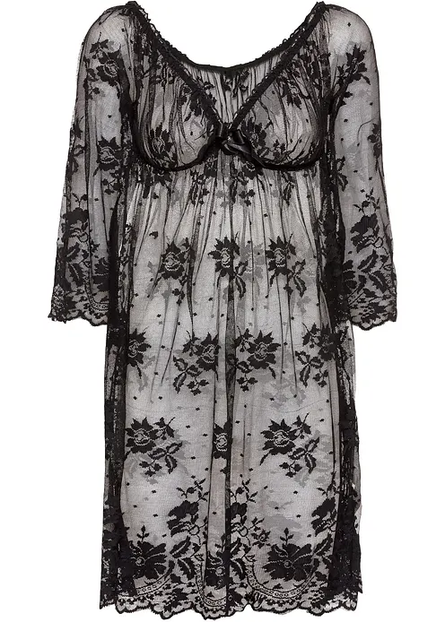 Pure Eleganz! Das Negligé umspielt luftig Ihre weiblichen Kurven und sorgt mit zarter Transparenz für tiefe Einblicke. Der tiefe V-Ausschnitt umrahmt fein Ihr Dekolleté und eine Zier-Schleife in der Mitte rundet das Outfit perfekt ab. Ihr Partner wird von diesen romantischen Look begeistert sein.Das Negligé ist auch in großen Größen erhältlich.