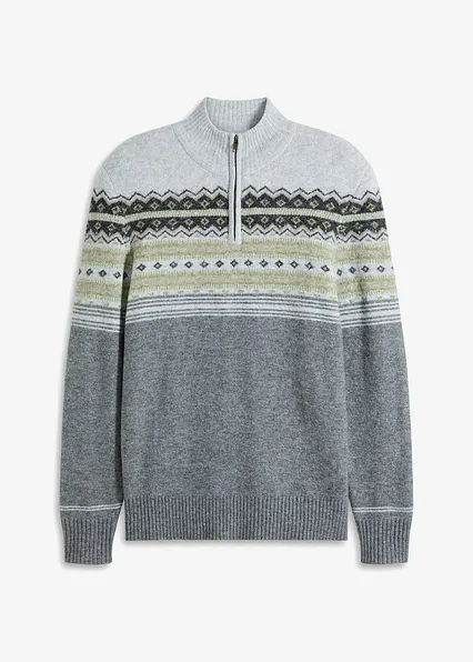 Modischer Norwegerpulli mit Stehkragen und Reißverschluss