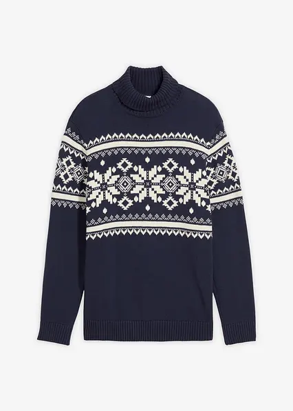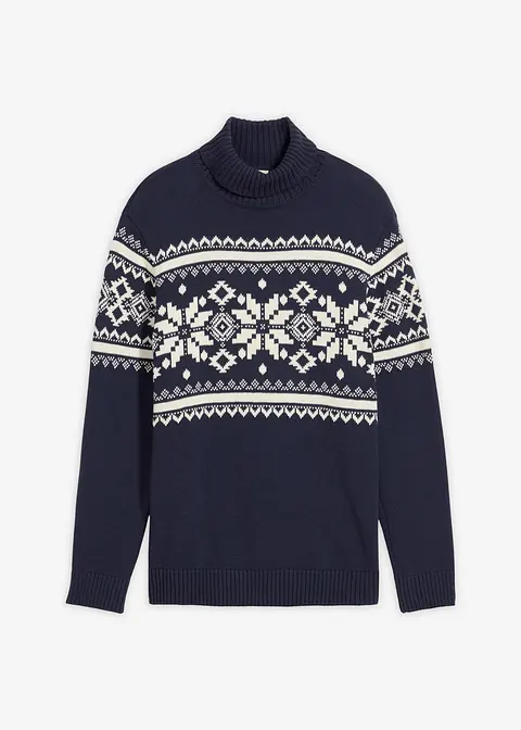 Norweger-Pullover mit Rollkragen aus reiner Baumwolle
