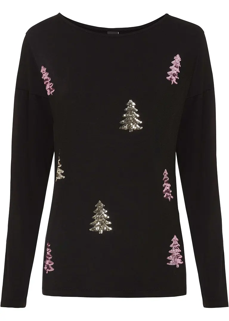 Raffiniertes Shirt mit Paillettenverzierung und besonderer Schnittform
