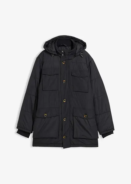 wattierter Stepp-Parka mit aufgesetzten Taschen und abnehmbarer Kapuze