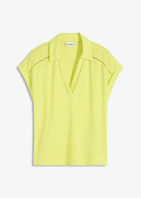Poloshirt aus Viskose- Pique mit Spitzeneinsatz