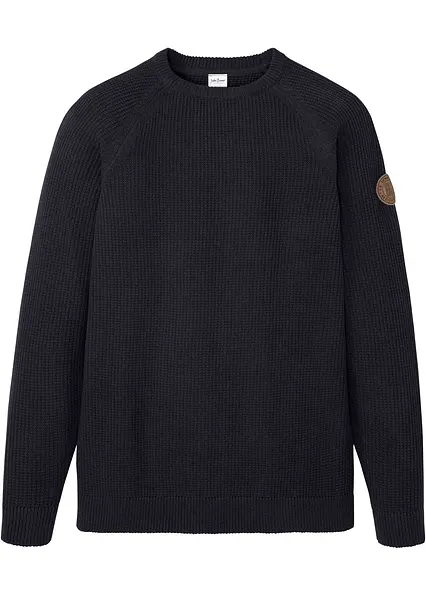 Kerniger Rundhalspullover mit recycelter Baumwolle