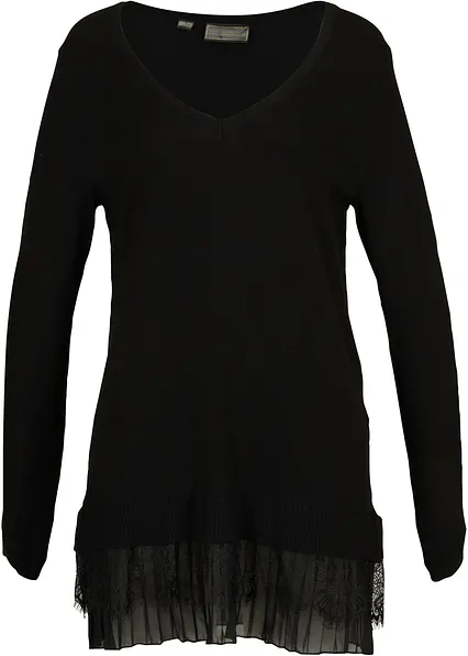 Feinstrickpullover aus fließendem Viskose-Mix in schwarz von vorne - bonprix