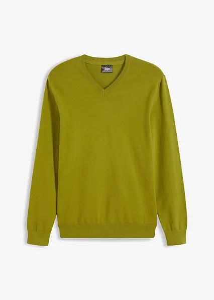 Klassischer Herren Feinstrick-Pullover mit V-Ausschnitt in weicher Baumwollmix-Qualität mit gerippten Abschlüssen.