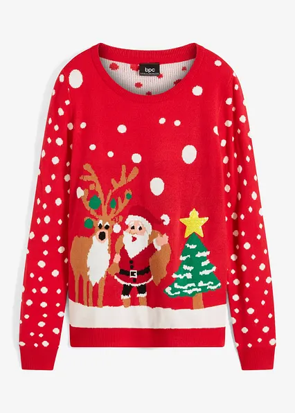 Strickpullover mit Weihnachtsmotiv und Rundhalsausschnitt