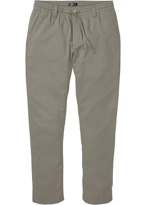 Diese Chinohose von bonprix ist Dein perfekter Begleiter für einen lässigen Look, da sie durch ihren Gummibund und das zusätzliche Bindeband optimalen Tragekomfort bietet. Du wirst die hochwertige Materialkombination aus 55% Leinen und 45% Baumwolle an warmen Tagen zu schätzen wissen. Die Chinohose unterstützt die "Cotton made in Africa Initiative" und fördert damit soziale Initiativen. Für Deine Wertsachen bieten die vier Taschen ausreichend Platz. Kombiniere die Hose mit einem T-Shirt oder einem Hemd und sei perfekt gekleidet für entspannte Tage.