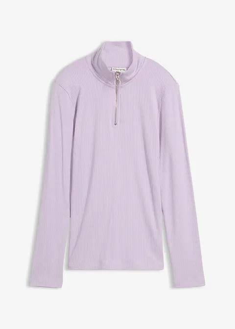 Figurbetontes Rippshirt aus softem Viskose-Mix mit Reißverschluss