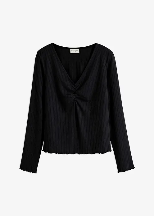 Rippshirt mit V-Ausschnitt in schwarz von vorne - bonprix