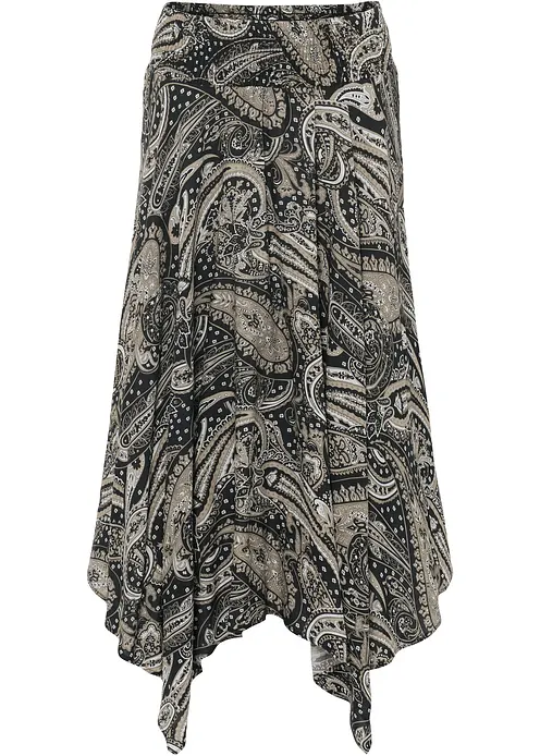Raffinierter Rock mit asymmetrischem Saum in Zipfeloptik. Elastischer Bund mit Smok-Effekt.