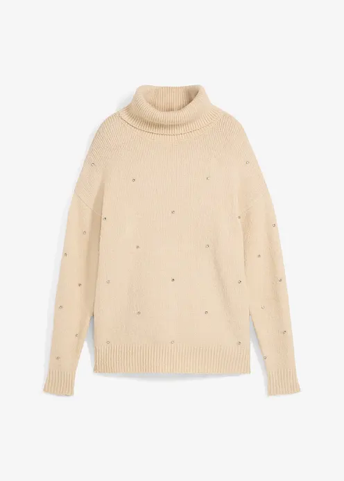 Rollkragenpullover mit Strasssteinen