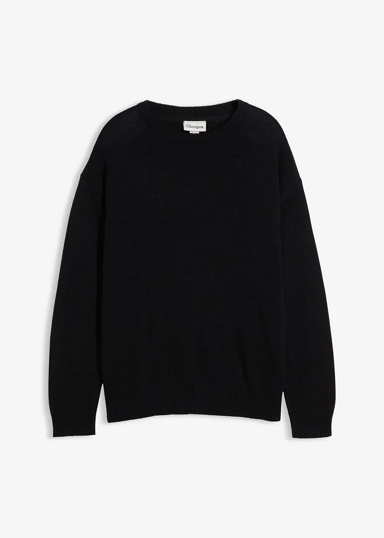 Rundhalspullover aus weichem Baumwollmix, Loose Fit