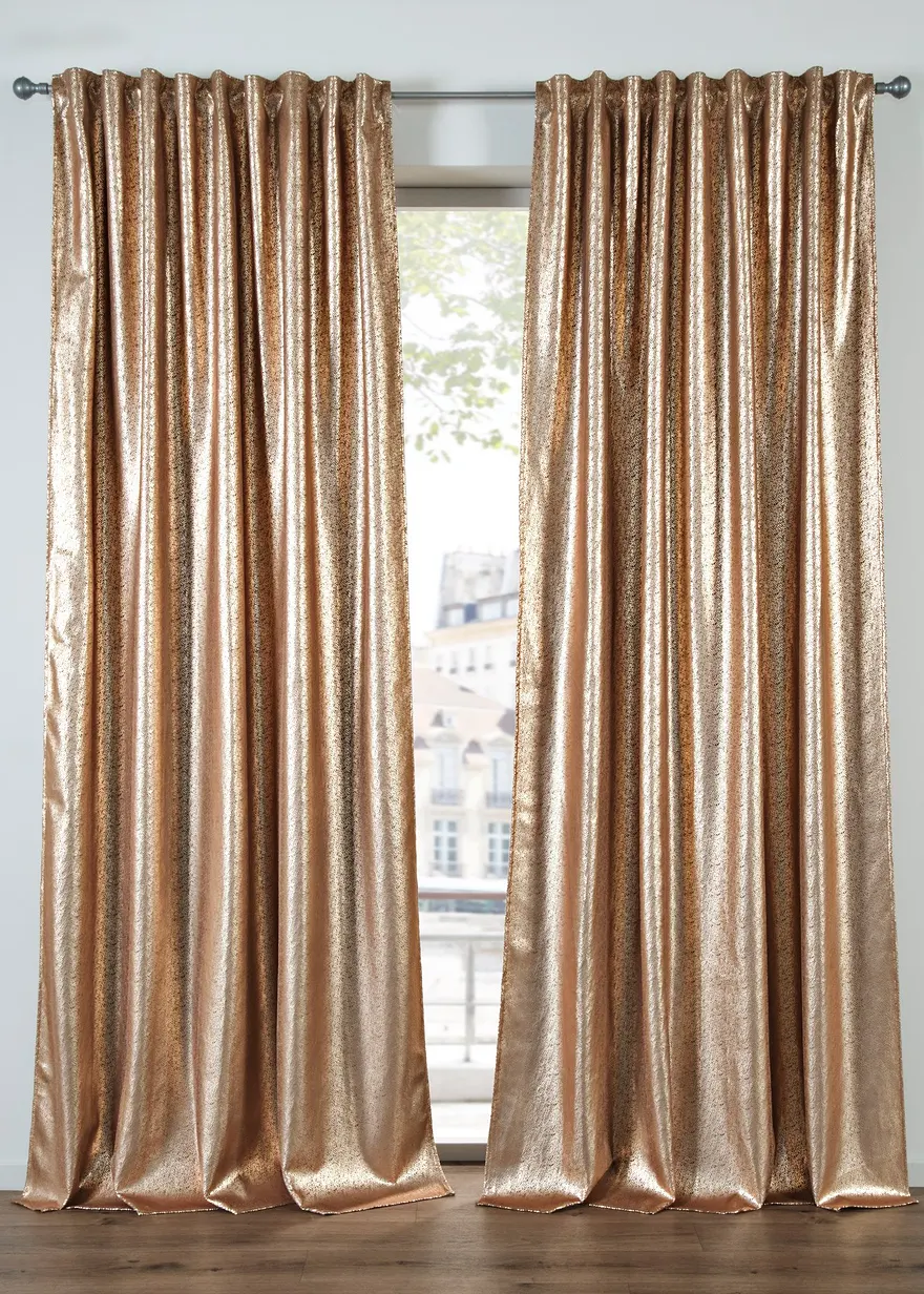 Setze ein glamouröses Statement in deinem Zuhause mit unserem blickdichten Samtvorhang, der mit einem beeindruckenden goldenen Glanz Druck auf der Vorderseite verziert ist. Dieser Vorhang bringt nicht nur Eleganz, sondern auch einen Hauch von Luxus in jeden Raum. Der hochwertige Samtstoff fühlt sich angenehm weich und geschmeidig an und sorgt gleichzeitig für eine hervorragende Lichtblockierung.