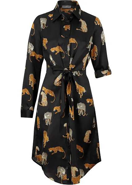 Schönes Satin Hemdblusenkleid mit modernen Leo-Druck