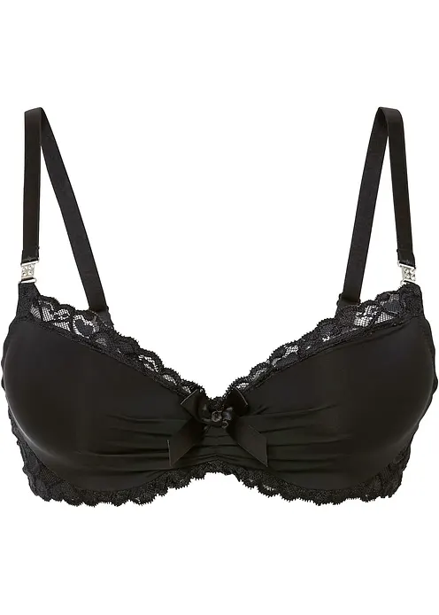 Der Schalen BH von BODYFLIRT ist ein absoluter Blickfang. Die Cupränder und Seiten des BHs ziert feine Spitze. In der Mitte ist der BH zudem mit einem raffiniert drapierten Faltenwurf und einer Schleife aus Satin geschmückt. Zusätzlich sorgen Glitzersteinapplikationen an den Trägern für das gewisse Etwas. Die Cups des BHs sind vorgeformt und gepolstert. Darüber hinaus bieten angenehme Formbügel optimalen Halt. Maite empfiehlt: "Dieses Ensemble ist ganz im Trend. Für die Frau mit dem Hang zur Romantik, die gerne ihre kokette Seite ausleben möchte. Damit bringt sie ihren ganzen Charme zur Geltung und setzt ihn ins richtige Licht."