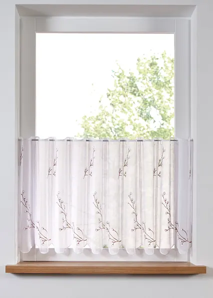 Scheibengardine mit Stickerei