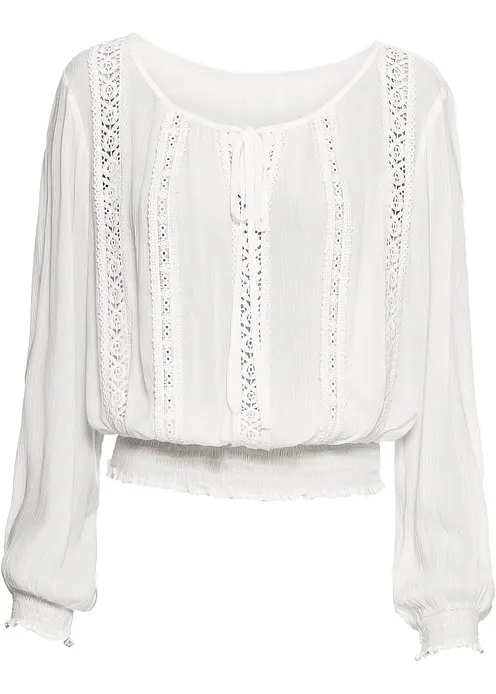 attraktive Spitzenbluse mit Gummibund und Crochet Spitze