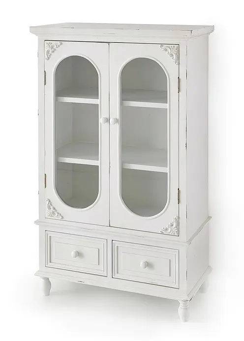 verspielte Optik, 2 Türen, 2 Schubladen, 2 Einlegeböden.