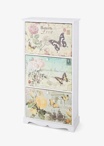 Mit romantischem Motiv auf der Frontseite: Schuhschrank mit 3 Klappen